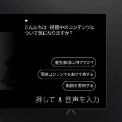 動画視聴中に「質問する」ボタンをクリックすると、AIツールが起動。リモコンのマイクボタンを使用することで、例えば「このクリエイターの他の人気動画は?」のように会話形式の質問ができるようになるというもの。質問が浮かばない場合は、デフォルトで用意されているプロンプトを活用できる。