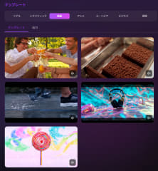 プロンプトの書き方が難しいと感じるユーザーや、テストで試しに作ってみたいのユーザーために、映像スタイル別のテンプレートが用意されており、選択することでサンプル映像とプロンプトを確認して、そのまま動画の生成を行なうことができる。