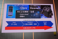 これら2つのデバイスを結びつけるのがAIで、「爽やかな、高級感、といった人間の感性語と科学的なデータ、成分、質量などを紐づけ、画像や音楽、SNSのテキストデータから、この状況に最もふさわしい香りのレシピをAIが自動生成することが可能になった。これらのテクノロジーを駆使することで、データ化、解析、生成、再生までが可能になった。この一連の流れこそが香りのメディア化。カメラとモニターの関係にも近づく」(松岡氏)という。