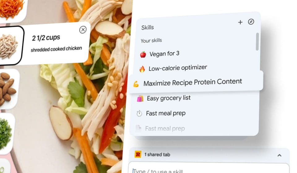 Googleは、WEBブラウザ「Chrome」において最もよく使うAIプロンプトを保存しGeminiでワンクリックで実行できるようになる新機能「スキル」を実装した。
