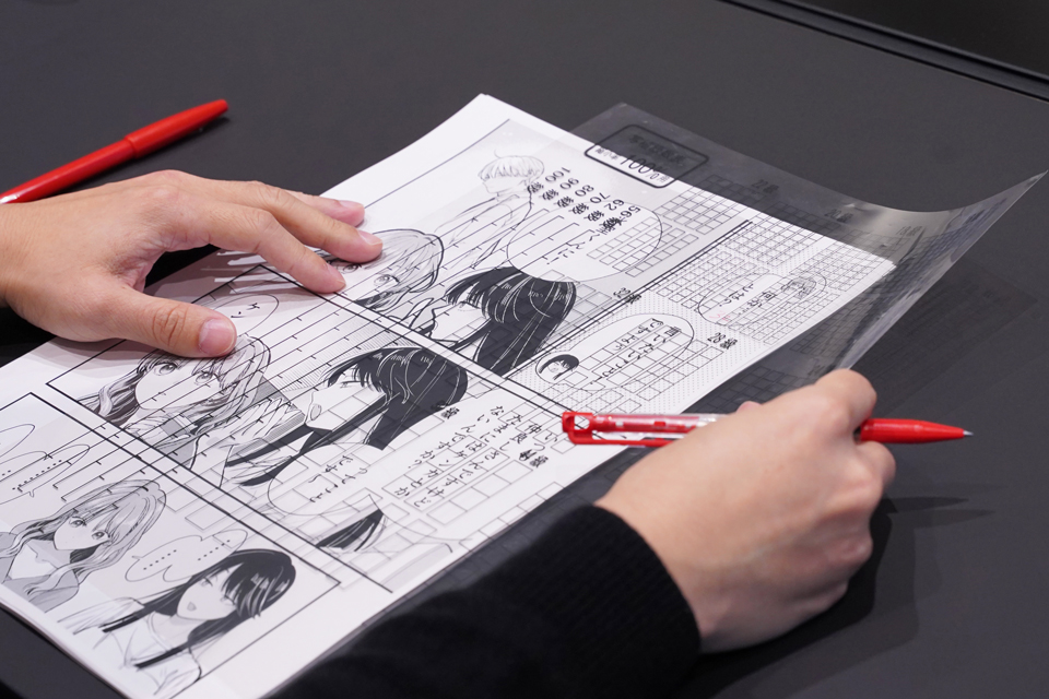 写植指定とは、マンガのセリフについて、フォントの種類・大きさ・スタイル・配置などを一つひとつ指定していく作業。たとえば、同じキャラクターのセリフでも、日常会話、叫び声、心の中のつぶやき、ナレーションでは、それぞれ異なるフォントやスタイルが使い分けられ、適切なフォントの適用は作品の演出や読者の没入感に直結する重要な工程であり、1話あたり数十〜数百のセリフすべてに対して、編集者が手作業で行なっている。