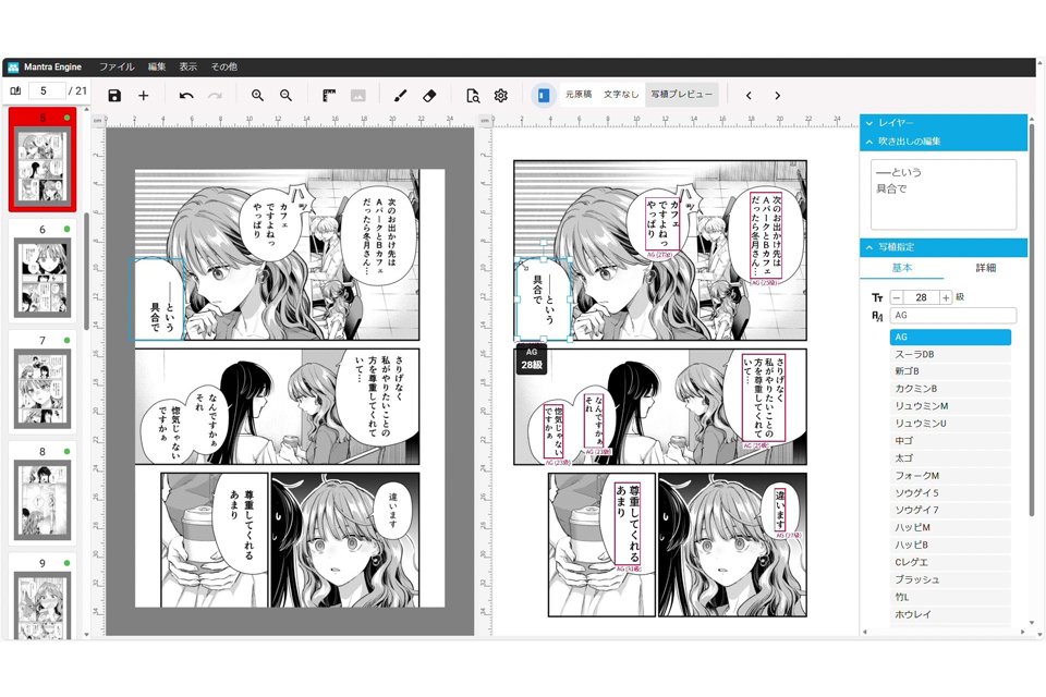 スクウェア・エニックス編集部でヒアリングを行ない、直感的なUIや「写植プレビュー」など、実際に写植指定を行う編集者が使いやすい機能を実現。