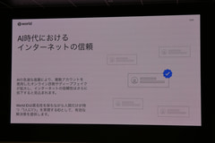不正アカウントを防ぐ方法としては、ボット対策としてCAPTCHAのような仕組みも利用されているが、これもAIにより突破されてしまう状況にあり、こうした課題の解決を目指し、「インターネット上で人間証明ということで使うことができるID」(牧野氏)としてWorld IDが開発されたという背景が説明された。