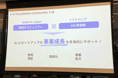 フレキシブルオフィスを運営するソフトバンク100%子会社のWWJ(WeWork Japan)は4月23日、ソフトバンクと連携しAIスタートアップを支援する新プロジェクト「AI Foundation Community」を開始する。