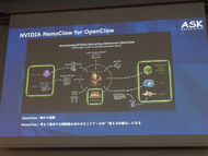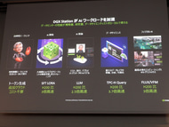 DGX Stationの性能だが、前世代のデータセンター向けのハイエンド製品H200と比べても、2.5倍から3.7倍の性能があり、追加コストをかけずにAIエージェントを動かすことができる。NemoClawのリファレンススタックも提供しており、ワンコマンドでセットアップできる。また、AI開発に必要なツールがプリインストールされており、すぐにAI開発を行えることも特徴だ。会場でもGIGABYTEがDGX Stationを展示しているが、日本では初のお披露目となる。