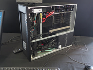 中でも注目は、GIGABYTEが展示していた「W775-V10-L01」である。これは、GB300搭載のDGX Stationであり、実機の展示は日本初とのことだ。マザーボードのヒートシンクは取り外されており、GB300の実チップを見ることができた。現在注文受付を開始しており、来月以降に出荷が開始される予定とのことで、価格は2,000万円程度になるとのことだ。